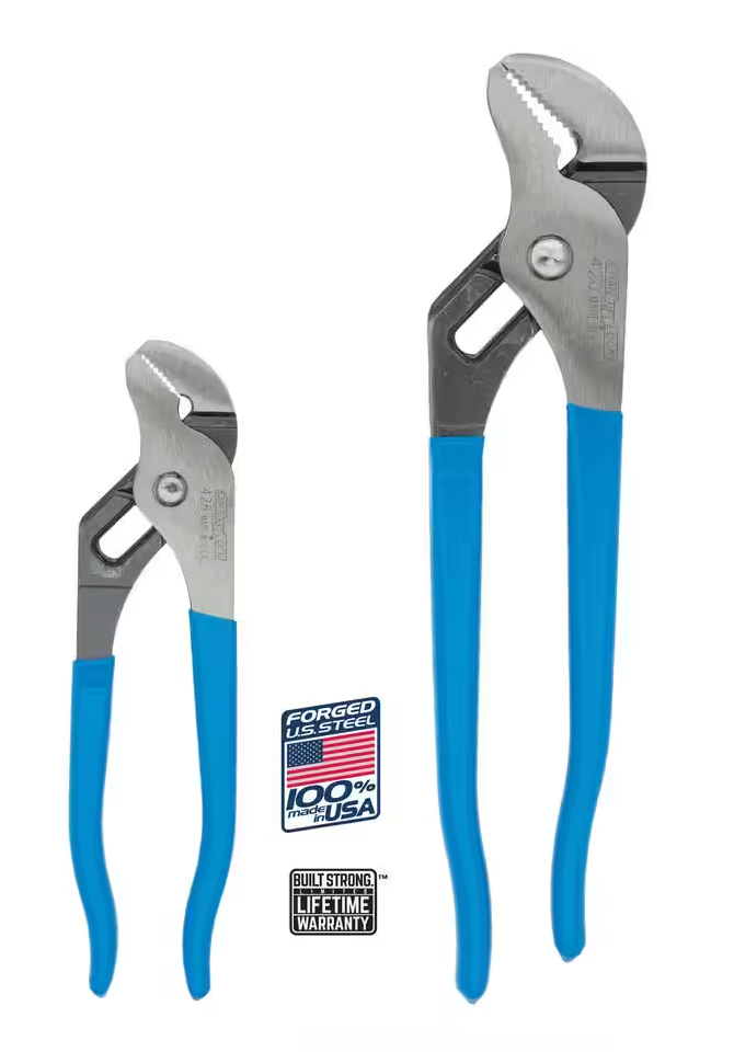 CHANNELLOCK® Straight Jaw Tongue and Groove Pliers are made in USA and forged from high carbon steel that is specially coated for ultimate rust prevention.