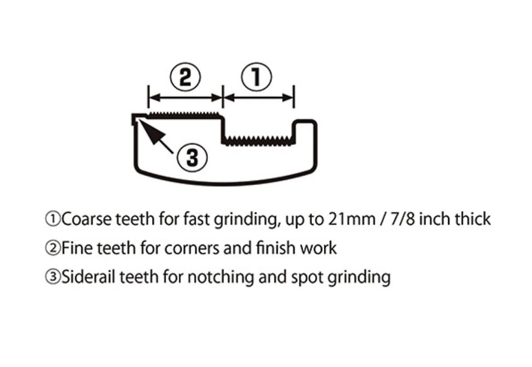 - Siderail teeth are great for notching and spot grinding.